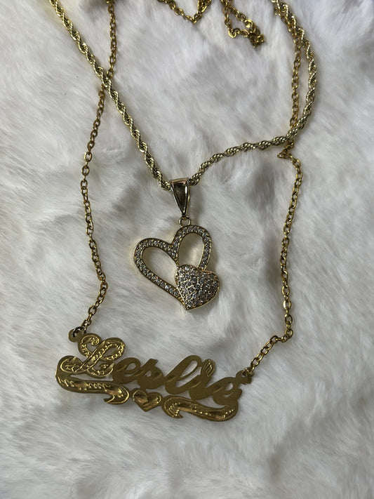 10k 14k Gold 3D Double Plated Name Necklace w/ Heart Tail