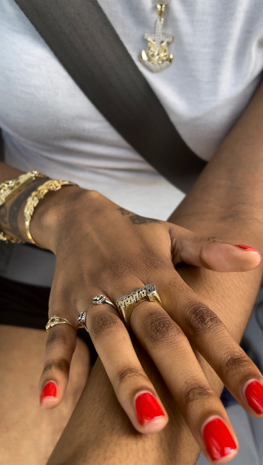 Real gold made for everyday style. From signature nameplates to bold rings and clean layers, every piece is designed to stack, style, and stay with you. Keep it classic or switch it up. The shine always hits.